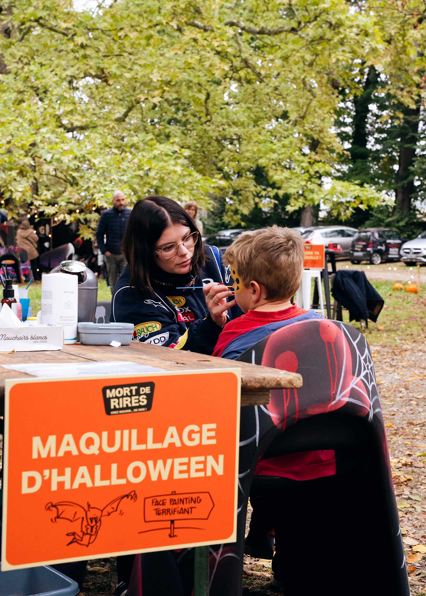 – La scénographie du site, avec l’aide des artistes grapheurs Kairos et Narke, a métamorphosé le Château de Chazey en un univers immersif mêlant humour et frissons. Entre installations lumineuses, mobilier graphé et décors monstrueux, le lieu s’est paré de teintes automnales et de symboles d’Halloween.
