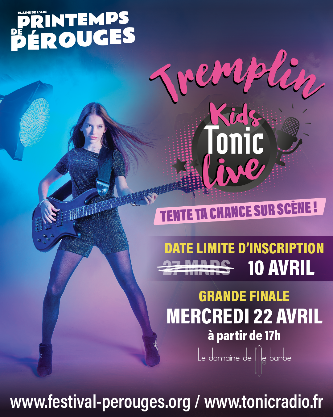 À l’occasion du Printemps de Pérouges, Tonic Radio organise depuis plusieurs années le Tremplin Musical Jeunes Talents, un concours dédié aux artistes en herbe de 7 à 17 ans. Ce tremplin offre aux jeunes musiciens une scène pour exprimer leur talent et vivre une expérience unique. Les lauréats, sélectionnés par un jury de professionnels, auront l’opportunité de jouer lors du Printemps de Pérouges sur la grande scène.